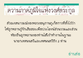 เจตนารมณ์ของท่านในข้อนี้ได้รับการถ่ายทอดนี้จากรุ่นสู่รุ่น